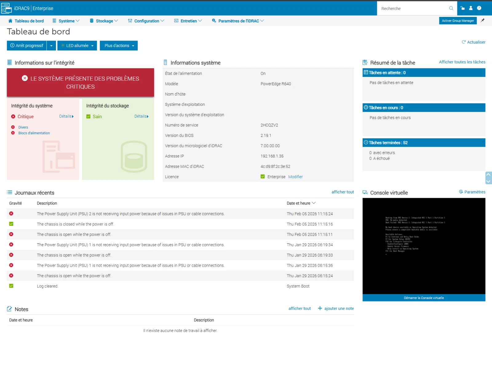Je vends un serveur Dell PowerEdge R640 (1U) en très bon état, issu d’environnement professionnel. Machine puissante, fiable et évolutive, idéale pour virtualisation, Proxmox, ESXi, Kubernetes, infra pro ou homelab avancé. Configuration : 2x Intel Xeon Gold 6138 (2,0 GHz - 40 cœurs / 80 threads au total) 64 Go DDR4 ECC (2 x 32 Go ou 4x 16 Go) PERC H730P (cache + batterie) 2x1 GbE + 2x10 GbE SFP+ 2x PSU 750W redondants Pas de disques mais caddies présents Fonctionnel, prêt à l’emploi Envoi gratuit via Fedex en France (emballage soigné) 2HCQZV2